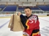 試合が終わったばかりのホカホカ?な白鳥王子アイスアリーナのリンク内でユニフォーム姿の選手と交流できる夢のような企画です。
