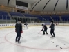 最後のメニューは3on3のミニゲーム。相手からパックを奪ったり奪われたり。「ここあいてる!」と思ってパスを出すもカットされたり。逆にパスカットから抜け出してゴール前フリーでシュート外したり(汗)やっぱアイスホッケーは見るのもやるのも面白い!
