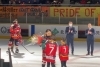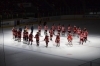 レッドイーグルス北海道とH.C.栃木日光アイスバックス両軍の選手がリンク中央で円陣を作ると、ドメさんとは駒大苫小牧高校の同期で王子イーグルスでも共に戦った戦友、齋藤藤哲也選手からの花束贈呈が行われた。