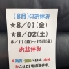 冬期間: 土日祝の営業になり、平日は不定休になります。